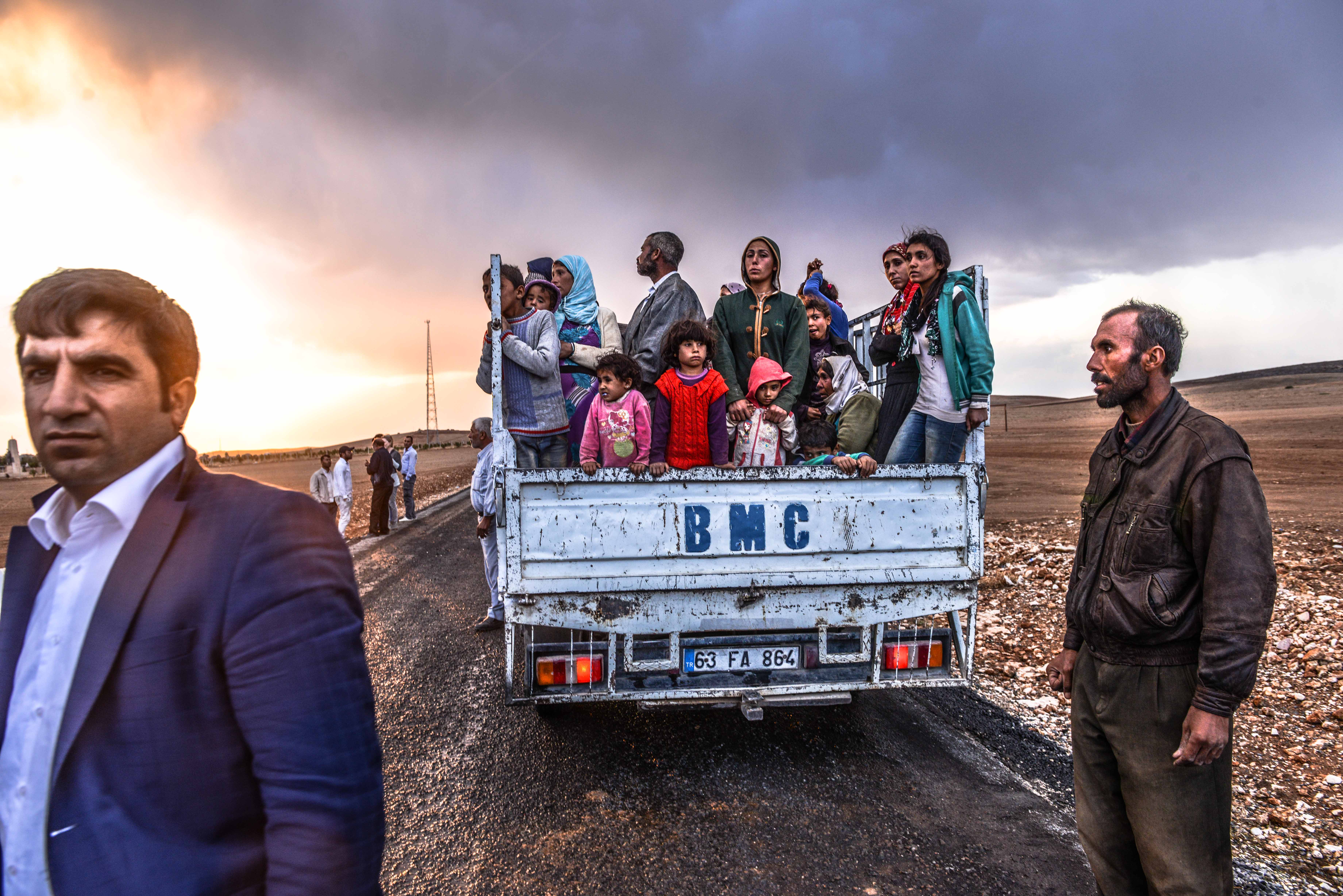 In Suruç, Valdman witnessed a scene of desperation. The streets are awash with people, living and sleeping wherever they can. Many of them stand on the border, nearly hysterical as they watch and listen to the ongoing battle for their town, wondering if those they left behind will survive.